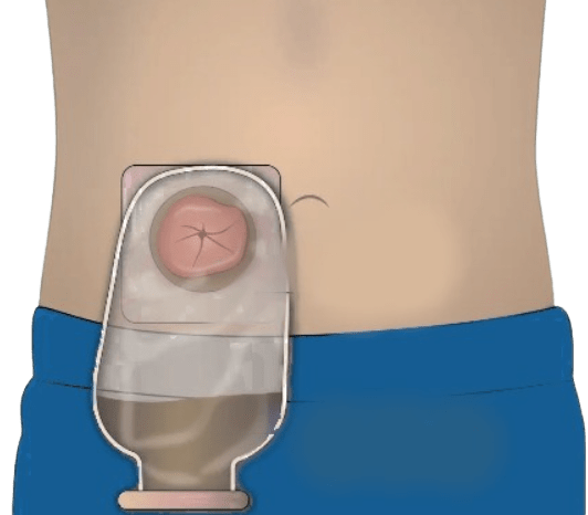 - Es una parte del intestino que por medio de una cirugía se saca por un orificio que atraviesa la pared abdominal, desde la cavidad abdominal hasta la piel.